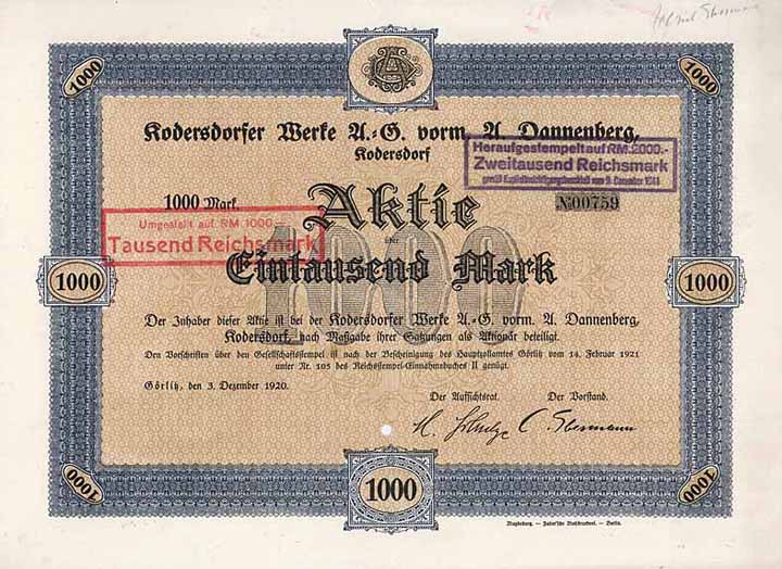 Titel:Kodersdorfer Werke AG vorm. A. Dannenberg