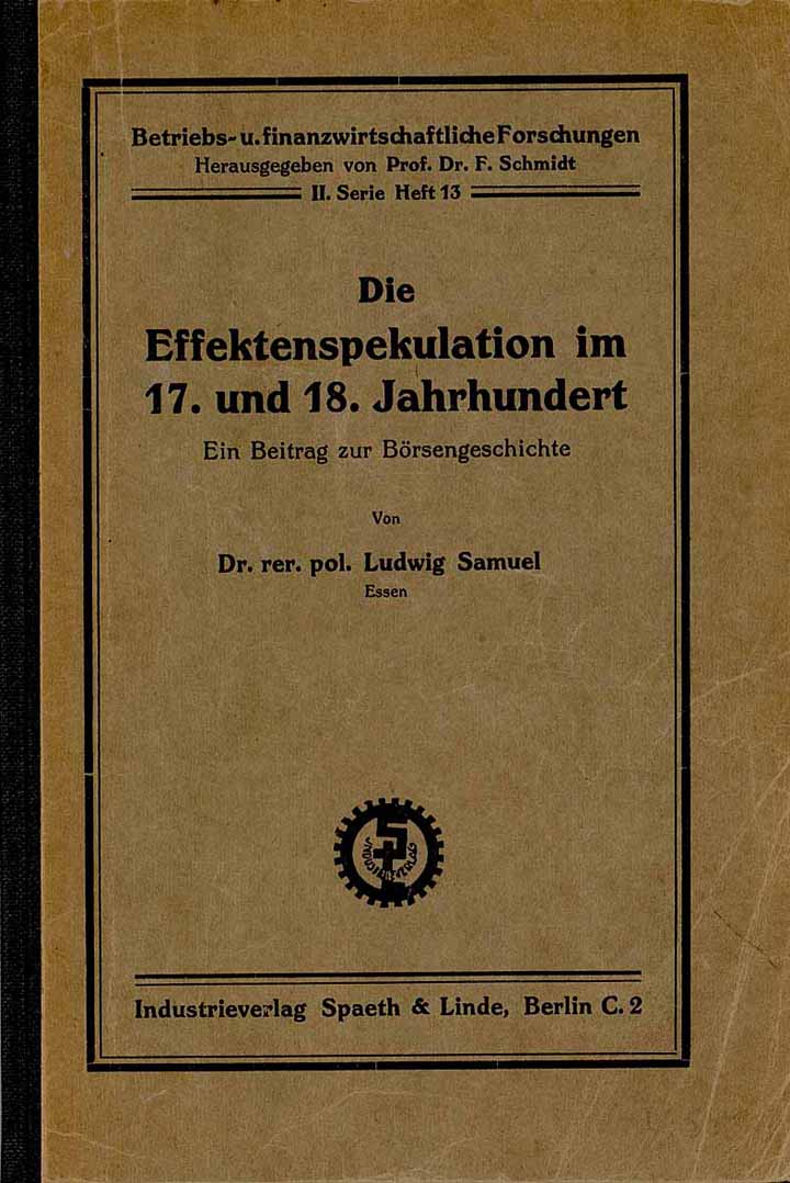 | Vorheriges Los | Zurück | Nächstes Los | | Losnr.: | 1425 (Varia) | | Titel: | Die Effektenspekulation im 17. und 18. Jahrhundert - Ein Beitrag zur Börsengeschichte | | Auflistung: | Buch, Hardcover, 192 Seiten, Format ca. 15 x 22 cm. Autor: Dr. Ludwig Samuel. Aus der Reihe "Betriebs- u. finanzwirtschaftliche Forschungen, II. Serie Heft 13". Erschienen 1924 im Industrieverlag Spaeth & Linde. | | Ausruf: | 50,00 EUR | | Abbildung: |  | | Besonder-heiten: | Viele Kapitel, die das Thema Effektenspekulation und Börse erschöpfend aus der damaligen Sicht (vor fast 100 Jahren) und unter vielen Aspekten beschreiben. | | Verfügbar: | Literarische Antiquität. Die ersten 3 Seiten altersbedingt leicht angelöst und an der Bindung etwas beschädigt, der Rest ist in Ordnung. Ebenfalls altersbedingt Papier leicht gedunkelt. | | Erhaltung: | VF | | Zuschlag: | 50,00 EUR |