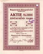 Alle Wertpapiere stammen aus unserer Bilddatenbank. Es kann deshalb vorkommen, dass bei Abbildungen auf Archivmaterial zurückgegriffen wird. Die Stückenummer des abgebildeten Wertpapiers kann also von der Nummer des zu versteigernden Wertpapiers abweichen. |
